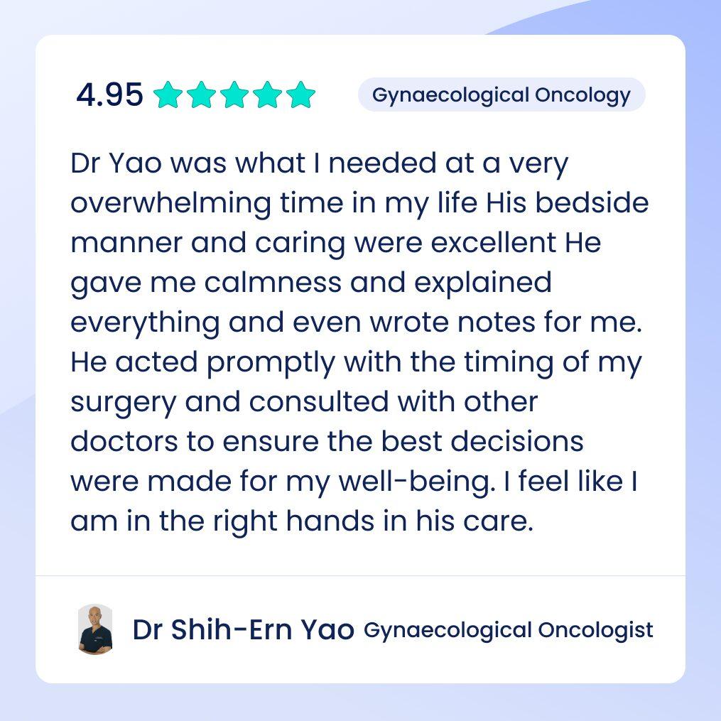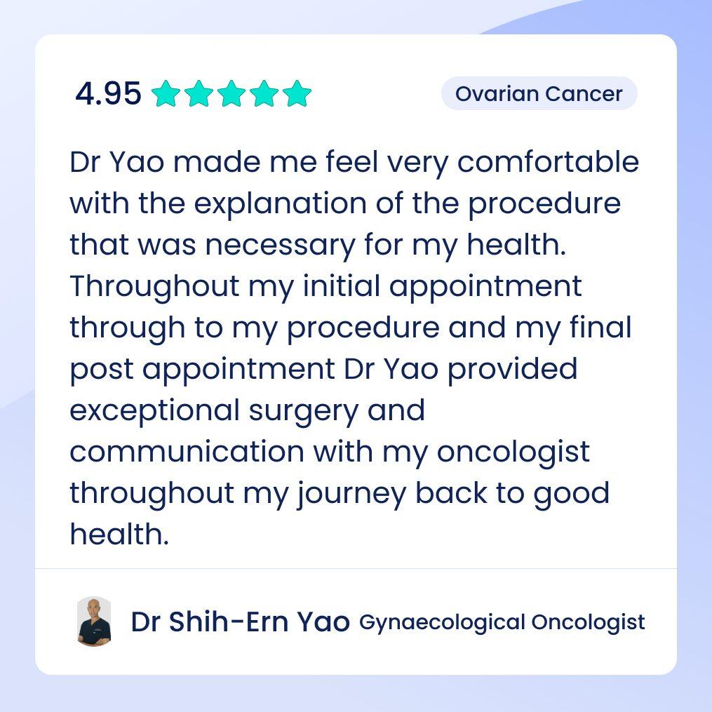 A further 6 years of subspecialist training in gynaecological oncology at the Queensland Centre for Gynaecological Cancer (Brisbane, QLD) and The Royal Marsden NHS Trust (London, UK) equipped Dr Yao with a wide surgical skill set encompassing all facets of women’s cancer surgery, with particular proficiency in advanced minimally invasive laparoscopic and robotic-assisted techniques.